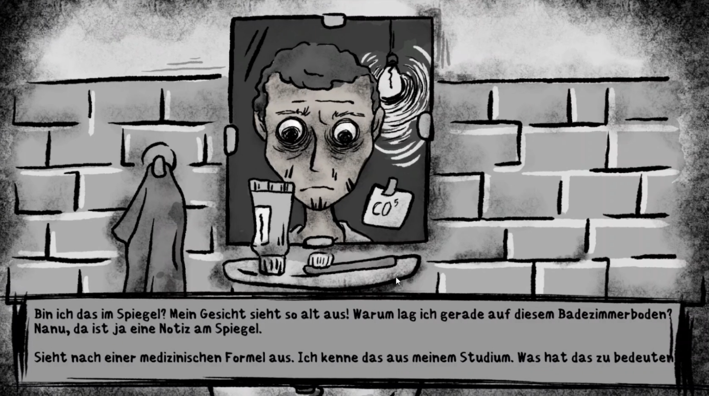 Ancoly is a dark 2D puzzle game. In the 1960s, an unexplored disease began to spread. A researcher lives in a large manor house but cannot remember anything. He discovers a sick child in his home as well as a fragment of a medical formula. He attempts to complete the formula and recover his memories. Along the way, he uncovers unsettling truths about himself, the child, and a mysterious woman.